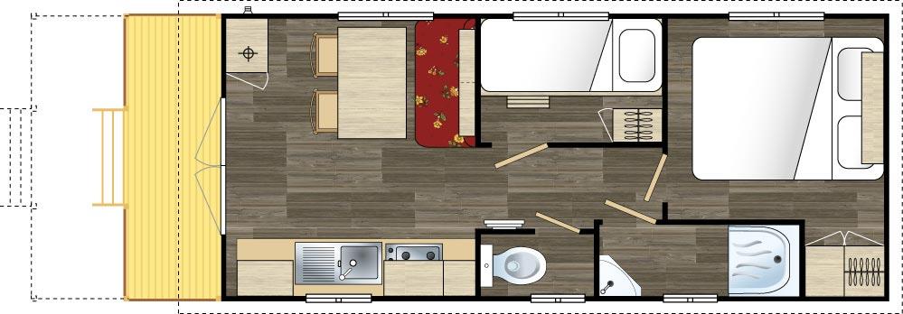 Mobil home 2 chambres 29m² avec terrasse couverte.
